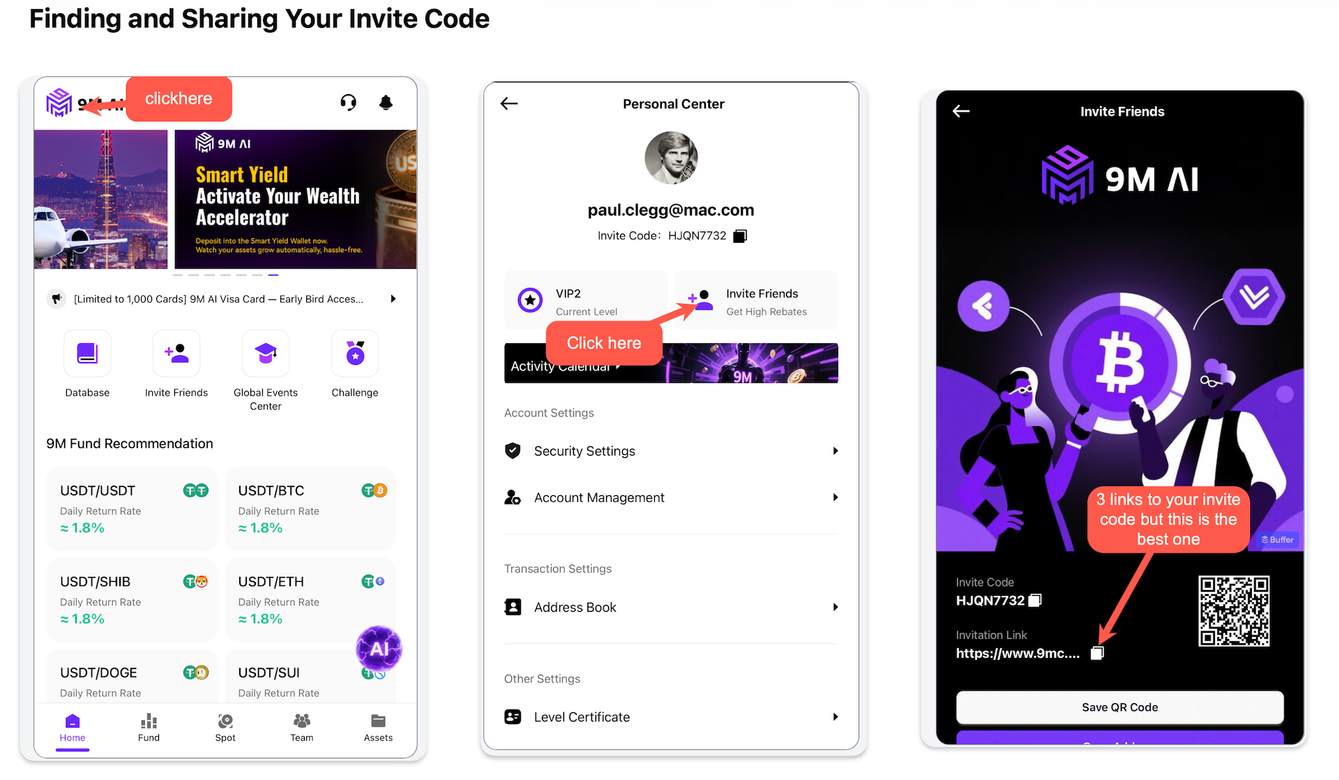 Access your 9m account and locate your personal invite code: